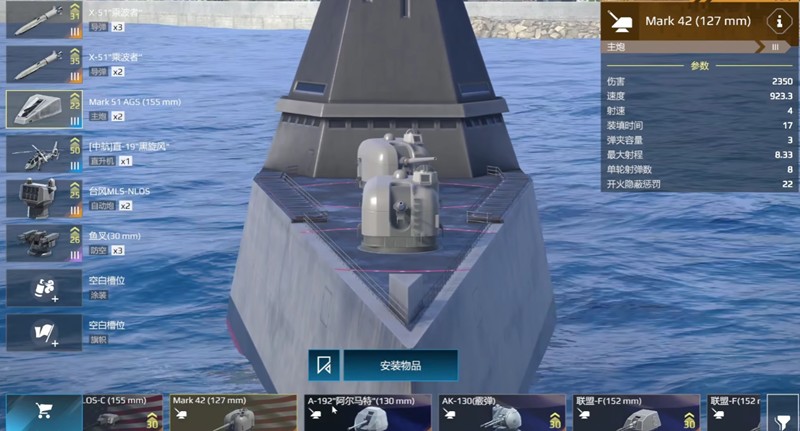 朱姆沃尔特在现代战舰中的定位是高端驱逐舰,拥有顶尖的火力输出能力。其前置炮弹配合双主炮能打出惊人的爆发伤害,搭配X51导弹时单轮伤害可达18万。不过这款战舰的后置导弹槽位设计需要频繁调整战舰朝向才能发射,这在实战中容易让舰长陷入被动。