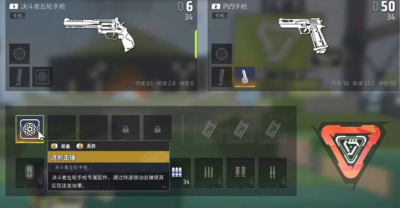 远光84的两把手枪都需要依赖专属配件才能发挥真正实力。手枪弹鼓和连击重锤分别是PV9和左轮的核心配件,没有这些配件的情况下,建议优先选择其他枪械。但一旦获得配件,不妨尝试这种独特的战斗方式,体验不一样的射击乐趣。