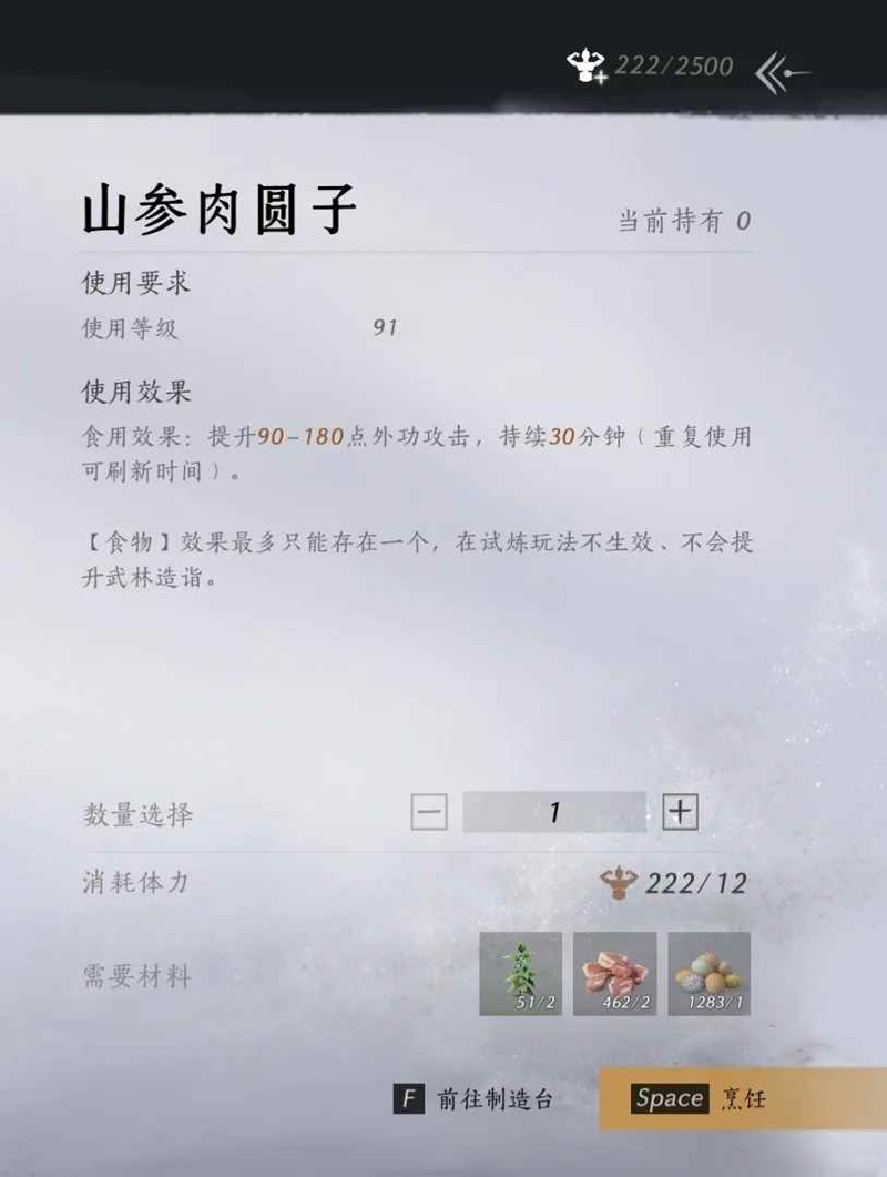 山参肉圆子:绿色材料山参虽为采集获取,但是山参单人世界可采集数量少,不建议