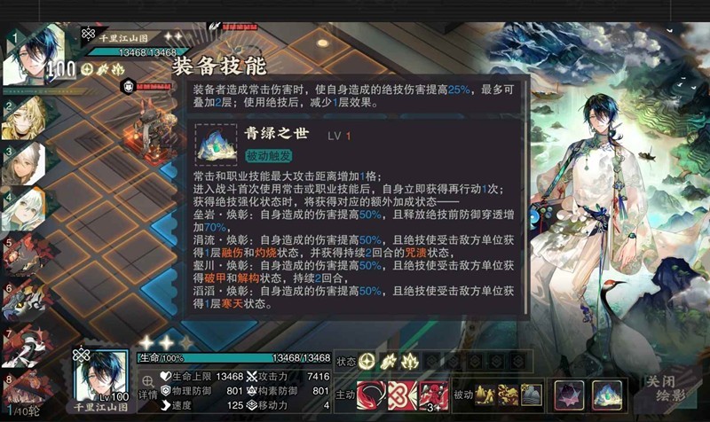 1.焕彰效果:常击和职业技能最大攻击距离增加1格;进入战斗首次使用常击或职业技能后,自身立即获得再行动1次;获得绝技强化状态时,将获得对应的额外加成状态﹣-