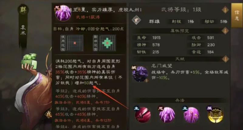 另一个值得培养的紫将是糜竺。这个武将拥有清除队友减益效果的能力,同时还能为周围队友恢复生命值。虽然回血量不如乐进,但解控能力在战斗中非常关键。糜竺的天赋可以提升自身生命上限,在被攻击前就能为队友解除负面状态,这种先手解控的机制让他在团队中扮演着重要角色。