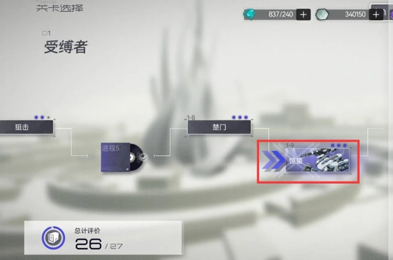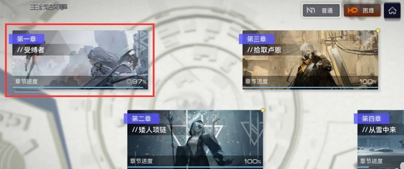在游戏主界面选择主线故事章节,找到第一章”受缚者”中的1-9惊蛰任务,点击准备作战即可进入关卡。建议在开战前检查角色状态,确保装备和技能都已调整到位。关卡开始后会遭遇多波敌人进攻,需要灵活运用场景中的掩体。