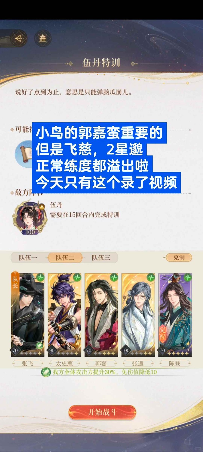 【伍丹特训下】:ex的小回血奶妈,图上这个练度差不多13-15回合过。纯色队,阴队我过不了。。一星虞翻。。。水队实在后续乏力。。火队小鸟就更别想了【今天只有这个录视频了】