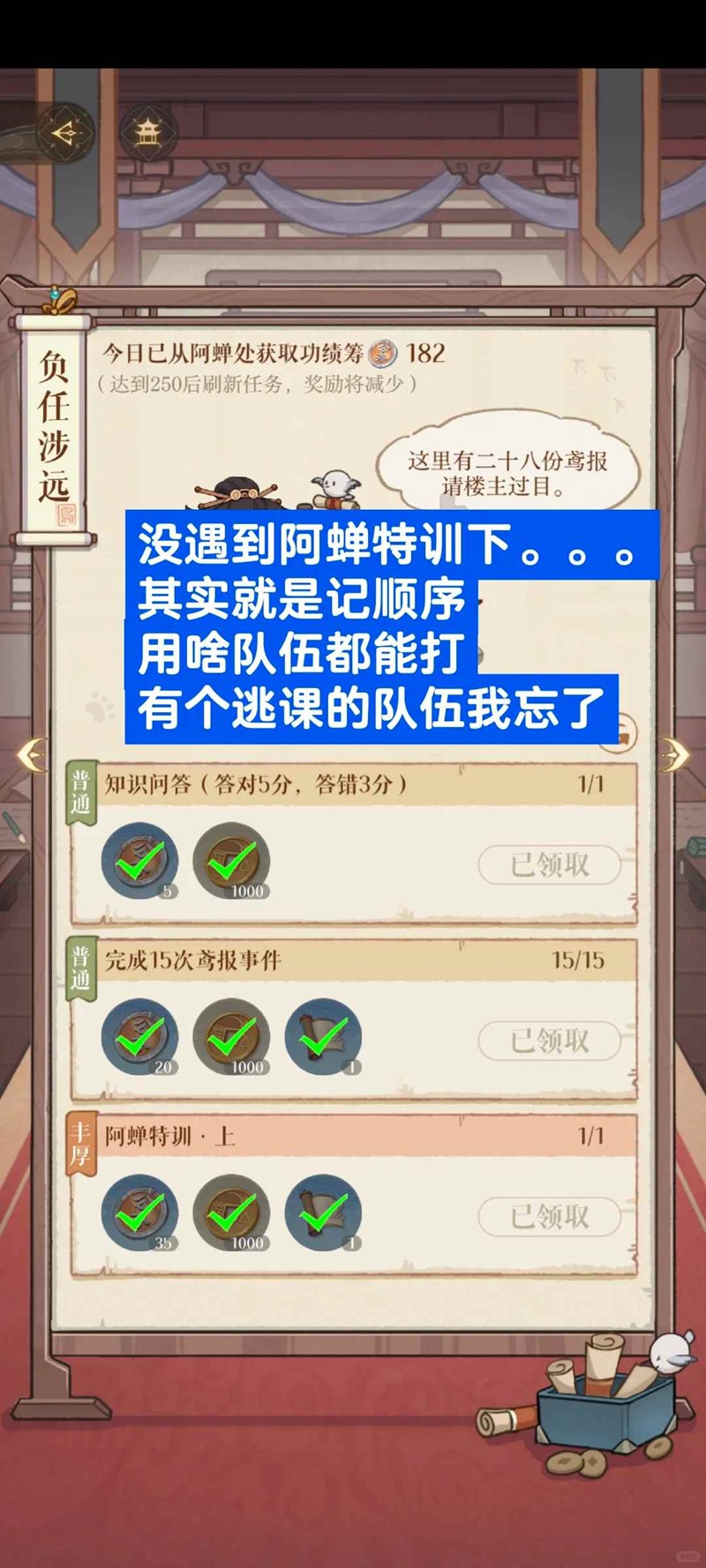 【阿蝉特训下】:今天没刷到100级的,就是记顺序,活着,带谁都可以。