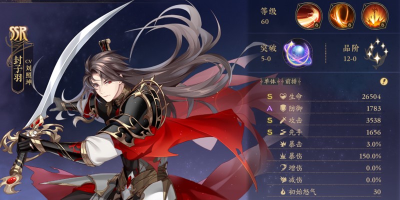 作为前排角色,封之羽不仅防御优秀,攻击力也不容小觑。他的追猎技能能为敌人附加增伤效果,最高可叠加30%伤害加成,攻防兼备的特性让他成为前排的优质选择。