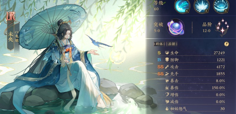 未央是游戏中人气极高的辅助角色,她的剑心神技能可以大幅提升全队攻击力。强化到二级后还能在击杀敌人时获得追击机会,堪称最百搭的辅助选择。