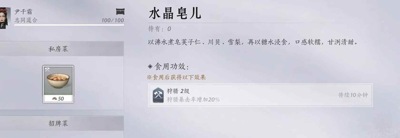 3、记得刷之前去开封尹千霜那里买狩猎暴击20%的药,有几率直接出3个材料