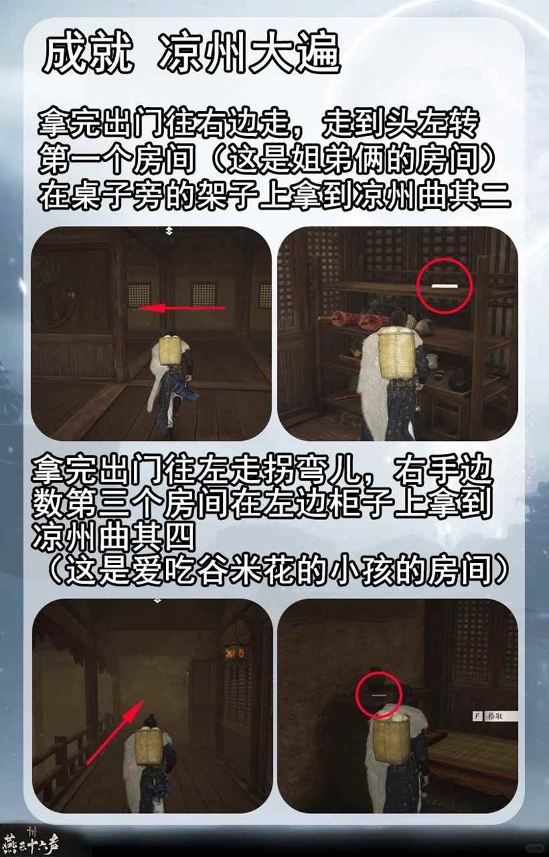 前置需要咱们过完主线《凉州曲》,来到剧情人物重要停留的那几个地方拿凉州曲就能拿到成就。