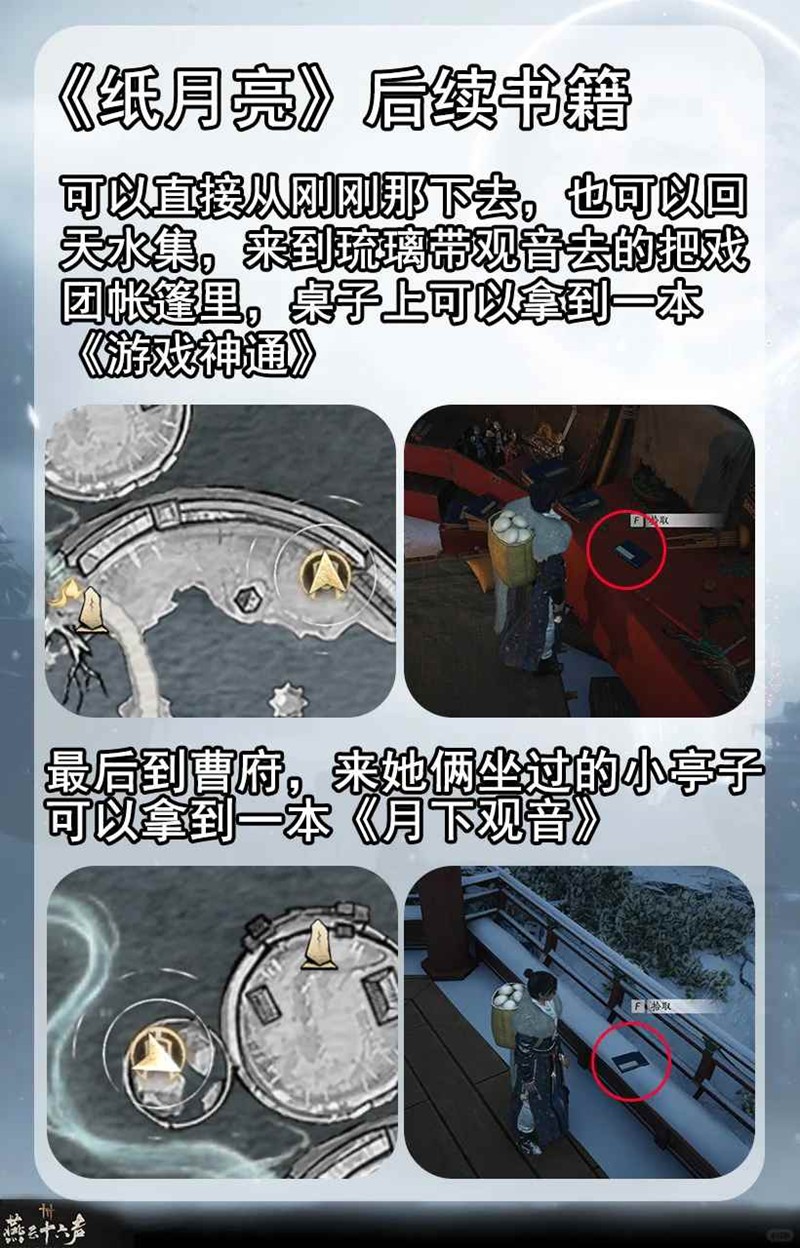 最后来到曹府,来到她俩坐过的小亭子那可以拿到一本《月下观音》。