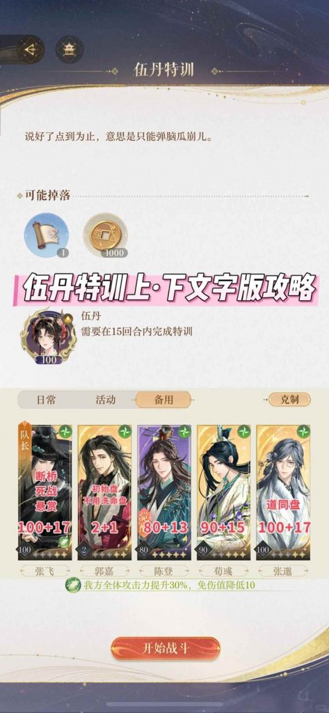 以上就是如鸢伍丹特训上·下文字版攻略的全部内容了,更多游戏资讯,攻略内容敬请关注我们,您的支持是我们努力的动力!