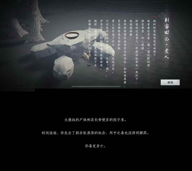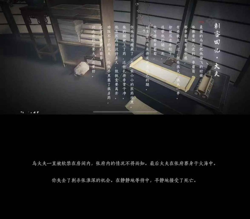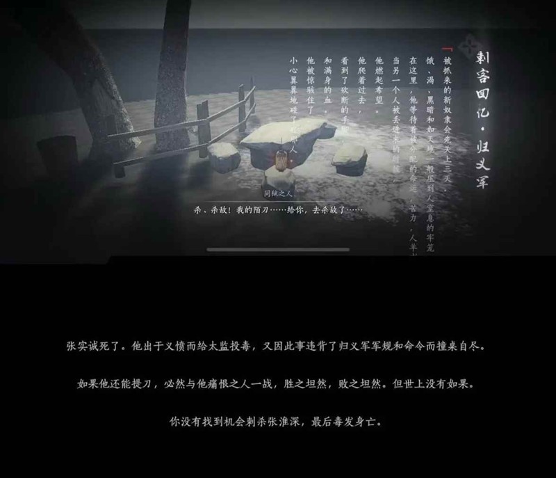②张实诚去送饭一*选择不附身索中丞(等待,不进行任何操作)一前往马棚一被管家发现给唐使下毒一撞桌自尽(解释了未能赴约刁顺)