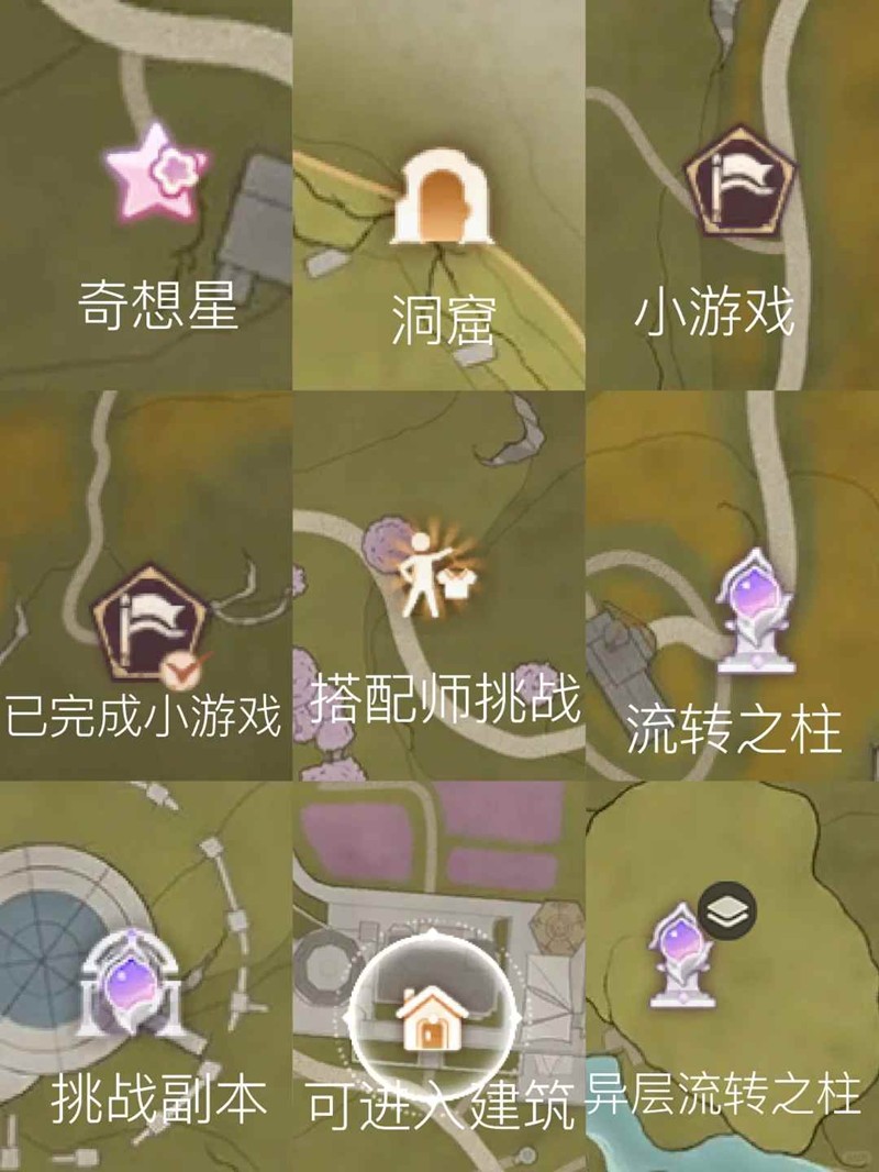 需要注意的是洞窟与挑战副本的详情页面,左下角有里面存在的奇想星跟灵感露珠数量,进入挑战副本后,右上角也会有数量提示,但是进入洞窟不会有提示,需要查漏补缺的可以打开地图查看。