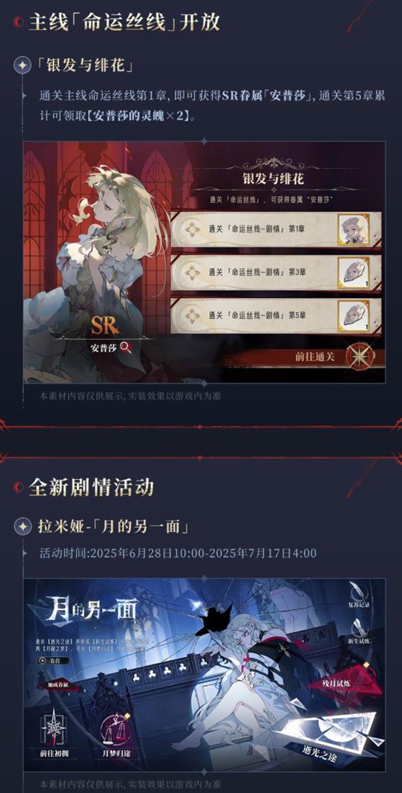 《银与绯》将于6月26日9:00正式开启全平台公测。公测当天,冒险者们将开启一段全新的旅程。其中,“新月之旅”活动将常驻开放,完成每日阶段任务即可获得积分,累积积分可领取SSR眷属【贝拉】、【拥融之触×40】等丰厚奖励。