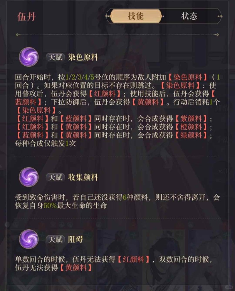 每回合身上带有的密探行动会获得对应颜色的颜料,没有顺序要求,收集六色颜料后才能击败伍丹